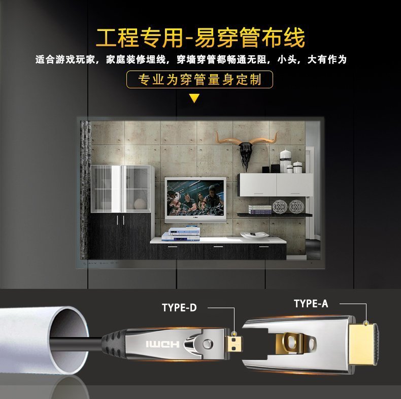 8K/60HZ、3D特效、动态HDR、VRR游戏模式,即插即用、预埋穿管专用、显示屏等设备使用
